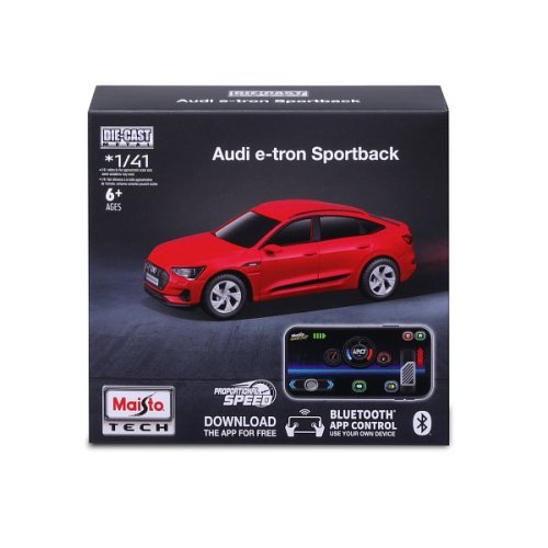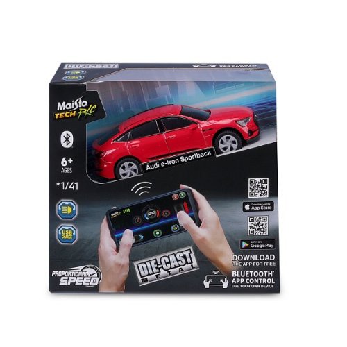 Zažijte budoucnost RC s Maisto mini kovovým RC modelem Audi e-tron Sportback se světly, ovládaným přes Bluetooth. Popusťte uzdu síle a ovládejte tento zázrak v měřítku 1:41 jako opravdový automobilový nadšenec. Vaše oblíbené modely z litého kovu jsou nyní ovládány vaším chytrým telefonem. Síla je ve vašich rukou. 2,4 GHz pro špičkový výkon. Vozidlo využívá lithiovou baterii, která je dobíjecí pomocí nabíjecího kabelu USB C (baterie i kabel jsou součástí balení). Baleno v krabičce. Rozměry balení: 14 x 15,2 x 6,35 cm. Věk: 6+