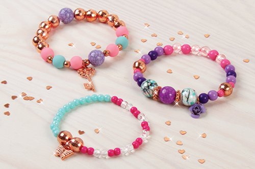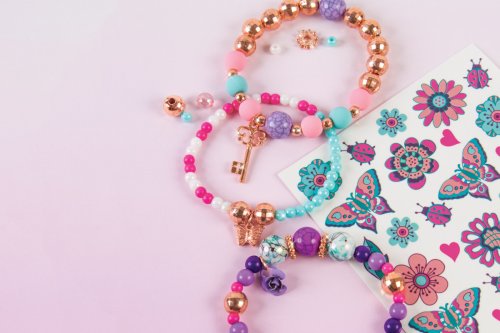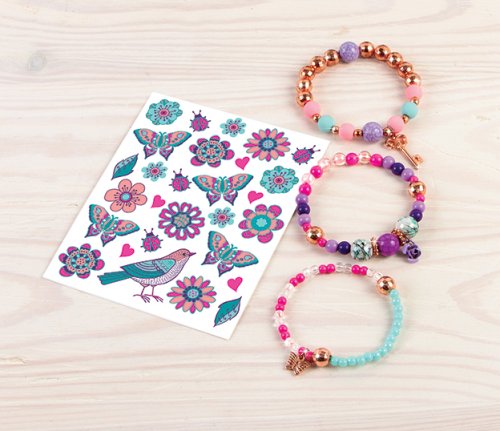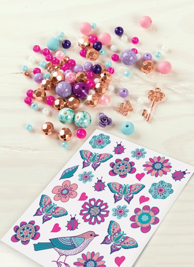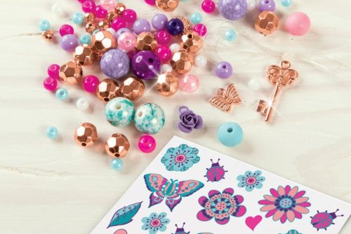 Výroba náramků s motivem květiny. Součástí je i tetování taktéž s motivy květin. Korálky se navlékají na vlasec, který je součástí. Součástí je i mnoho barevných korálků i doplňků. Baleno v krabici. Doporučený věk 8+
