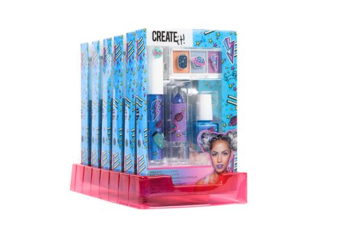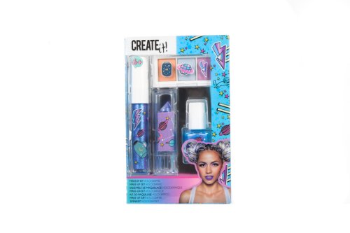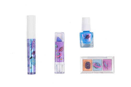 Make up sada holografická obsahuje oční stíny, lesk na rty, rtěnku a lak na nehty – vše v holografických barvách.