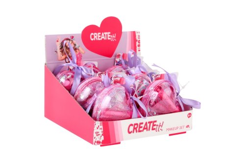 Rozjasni svůj look s roztomilou srdíčkovou paletkou make-upu CREATE IT!. Obsahuje barevné odstíny pro kreativní líčení očí i tváře, které se snadno nanášejí a kombinují. Díky hravému designu ve tvaru srdce je paletka skvělým doplňkem kosmetické taštičky a zároveň ideálním dárkem pro milovníky líčení. Balení obsahuje 6 kusů – 2× lesk na rty, rašenka, oční stíny a 2× lak na nehty. Tři různé druhy.