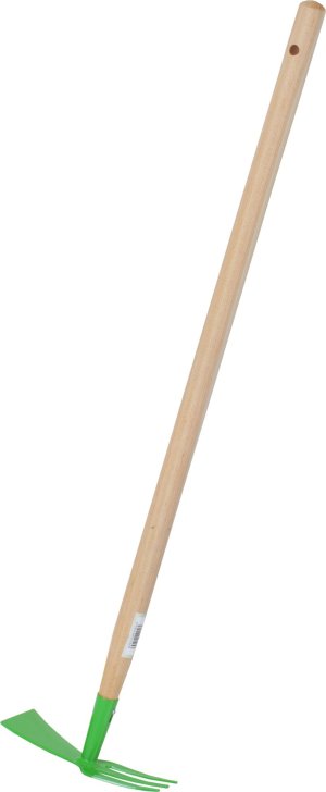 Velmi kvalitní a plně funkční dětská okopávačka v pestré barvě s dřevěnou násadou.