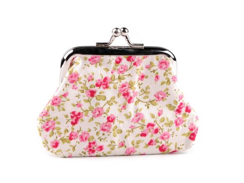 Romantická peněženka s motivem drobných květů je malá, vhodná na drobné mince a klíče. Můžete do ní ukrýt také bankovky nebo dekorativní kosmetiku. Je lehká, textilní, nahoře zakončená kovovým rozevíracím rámečkem se zapínáním. Náš tip: peněženku můžete využít i jako malé šitíčko. Můžete si do ní uložit všechny drobné předměty, které potřebujete na cestách.