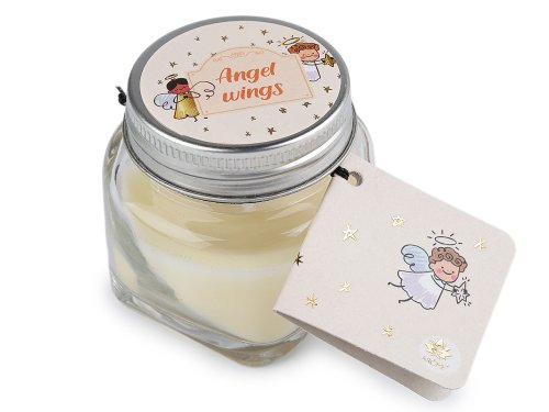 Malá vánoční vonná svíčka ve skle s jmenovkou 28 g - (Angel wings) krémová světlá (24 ks)
