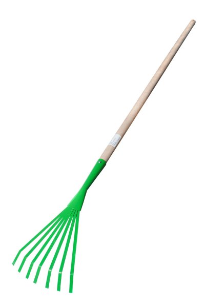 Velmi kvalitní a plně funkční dětské lamelové hrabičky v pestré barvě s dřevěnou násadou.