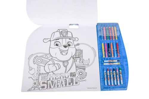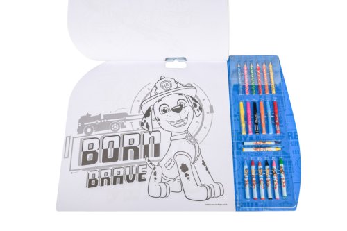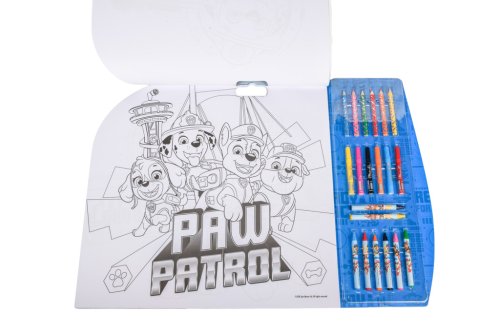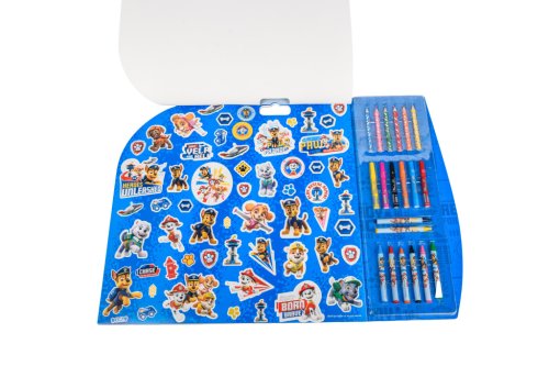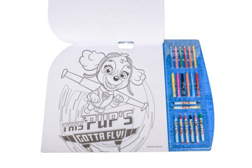 Malovací sada 5v1 Tlapková obsahuje – 8 ks voskovek, 6 ks fixů, 6 ks pastelek, aršík s 84 samolepkami Tlapková patrola, 15 šablon a čisté papíry.