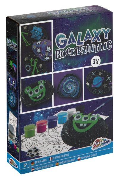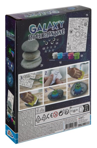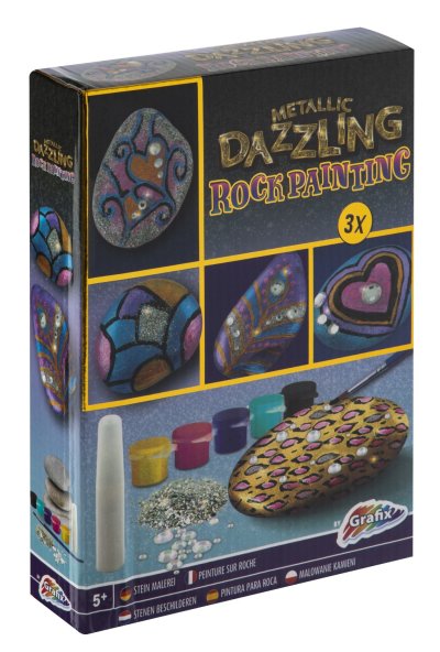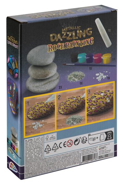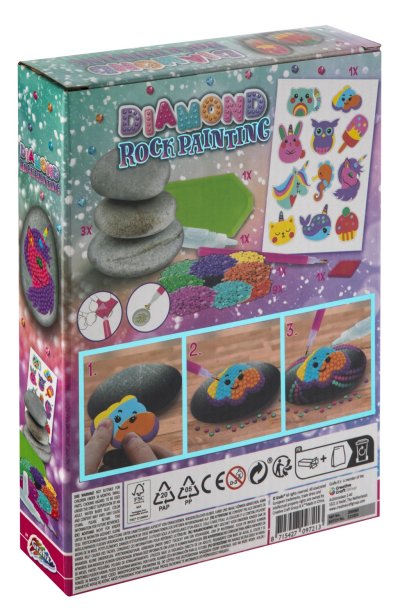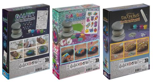 Malování na kamínky tři různé druhy v assortu diamond, galaxy, metalic – namaluj si své kamínky barvami. Balení obsahuje 6 barev metalických/galaxy/nebo kamínky a samolepky.