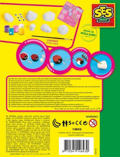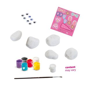 Tato sada obsahuje trendy barvy a výběr krásně tvarovaných kamínků k malování. Vytvoříte si také tyto roztomilé postavičky? Součástí sady jsou pohyblivé oči a detailní obrázky k nalepení, které krásný výsledek ještě umocní. Obsah sady: 5 kamenů, 8 pohyblivých očí různých velikostí, 6 barviček v trendy odstínech, štětec, kalíšek s lepidlem, návod. Baleno v krabičce. Rozměry balení: 20 x 15 x 4 cm. Nevhodné pro děti do 3 let. Věk: 5+