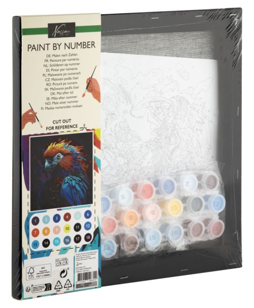 Kreativní sada pro milovníky zvířat a malování! Obrázek papouška na černém plátně si můžete jednoduše vybarvit podle čísel, která odpovídají jednotlivým barvám. Malování podle čísel rozvíjí trpělivost, přesnost a smysl pro detail, přičemž hotový obrázek působí jako skutečné umělecké dílo.Obsah balení:1 plátno s předtištěným motivem, sada akrylových barev, štětec, návod. Ideální dárek pro děti i dospělé, kteří rádi tvoří a relaxují u malování.