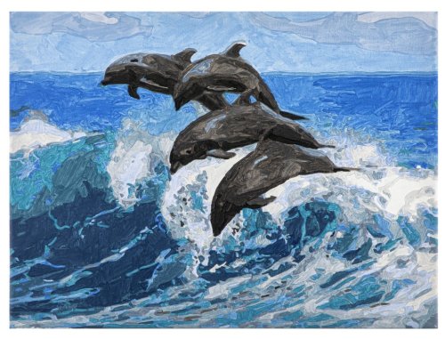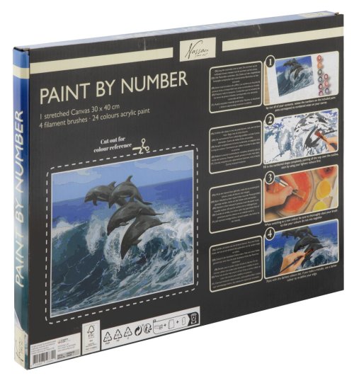 Malování podle čísel na na plátno Delfín 30×40 cm – namalujte si svůj obrázek pomocí čísel, které jsou již předtištěné. Součástí balení je 24 akrylových barev, plátno 30×40 cm s předtištěnými čísly, 2 ploché štetce a 2 kulaté štětce.
