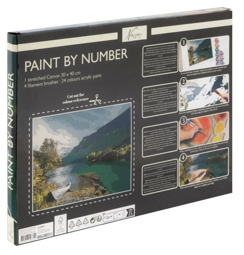 Malování podle čísel na na plátno Krajina 30×40 cm – namalujte si svůj obrázek pomocí čísel, které jsou již předtištěné. Součástí balení je 24 akrylových barev, plátno 30×40 cm s předtištěnými čísly, 2 ploché štetce a 2 kulaté štětce.