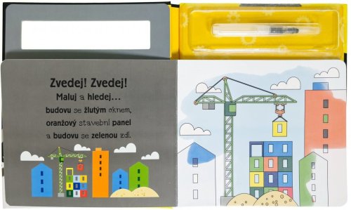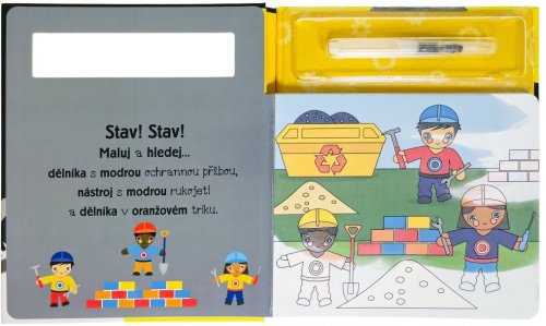 Užij si malování bez nepořádku s těmito znovupoužitelnými omalovánkami. Přetři obrázky vodou a hledej na stránkách ukryté dělníky, nástroje a silné stroje. Děti si s těmito omalovánkami s vodou užijí mnoho zábavy, procvičí si motoriku, trpělivost a poznávání barev. Až stránky uschnou, děti se mohou do vymalovávání pustit znovu! Znovu! A znovu!