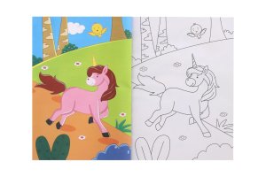 Omaľovánka s nálepkami + panoráma. Vyfarbi čarovné obrázky. Rozmer: 23 x 31 cm
