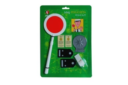 Sada Malý policista obsahuje nutné potřeby pro tuto profesi - plácačka, odznak, píšťalka, blokové pokuty (2 hodnoty) a policejní výložky.