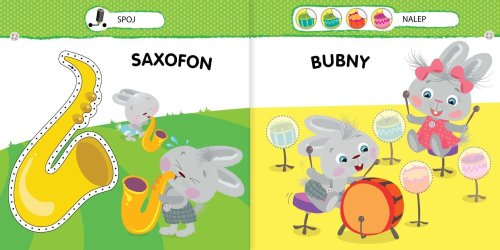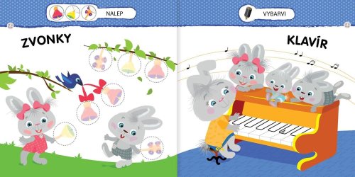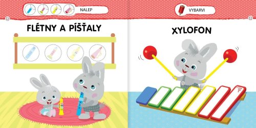 V této knížce najdou naši nejmenší malého zajíčka a plno jednoduchých aktivit, které jim pomůžou naučit se hravě a bez námahy názvy hudebních nástrojů. Nauč se s malým zajíčkem, jak se kterému hudebnímu nástroji říká. Víš, čím se liší klávesové, strunné, dechové a bicí hudební nástroje? Umíš na nějaký hrát? Čím se hraje na housle? A jaký tvar má triangl? Vše musíš ještě správně vybarvit, spojit a nalepit samolepky na ta správná místa. V této knížce se díky jednoduchým aktivitám naši nejmenší seznámí s hudebními nástroji všech možných druhů. Tak honem, pusťte se společně s malým zajíčkem do učení!
