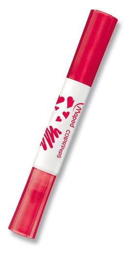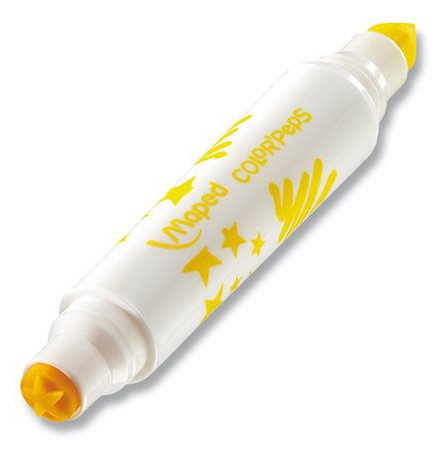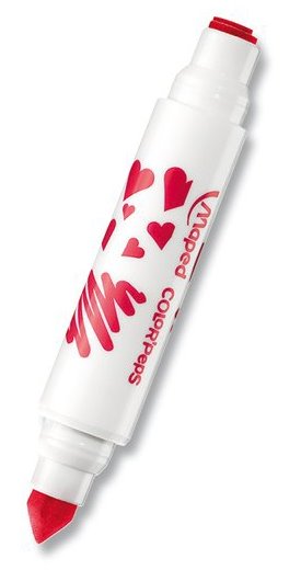 Souprava 8 kusů oboustranných fixů s různými motivy. Jeden konec s fixem s kuželovým hrotem, na druhém razítko s různými motivy. Každá barva fixu má svůj vzor razítka. Inkoust snadno vypratelný z většiny textilií a lehce omyvatelný. Hrot je odolný proti zatlačení. Šíře stopy 7,2 mm.