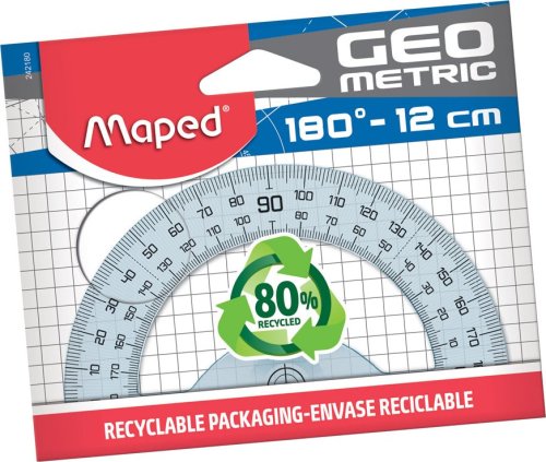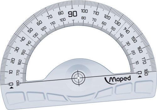Průhledný 12cm úhloměr vhodný do hodin matematiky, geometrie a dalších předmětů.
