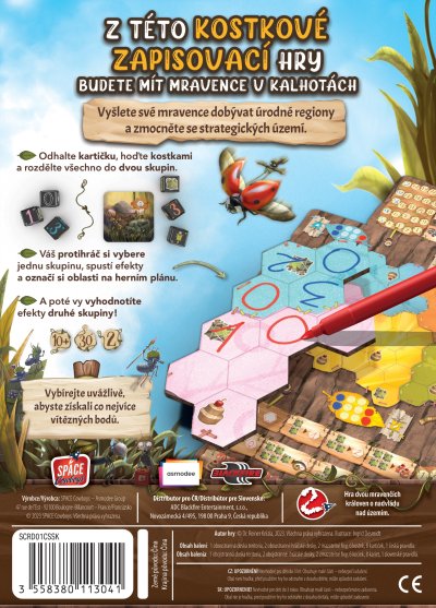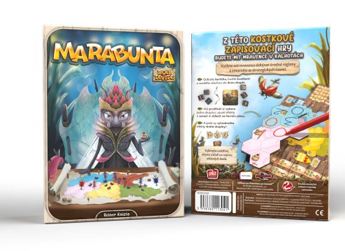 Vyšlete své mravence dobývat úrodné regiony a zmocněte se strategických území.Vaše nová kolonie zabírá rozsáhlé území. Nadešel čas rozšířit dosah, zvýšit počet svých mravenců a shromáždit nalezené bohaté zdroje. V oblasti se však usadila další kolonie, takže se o toto nádherné místo musíte dělit... Buďte zdvořilí, avšak obezřetní a neztrácejte ostražitost.Marabunta se hraje v průběhu několika kol. V každém kole se 6 kostek a 1 kartička rozdělí na dvě skupiny. Každý hráč poté vyhodnotí jejich efekty ve skupině, která mu připadne, a to označením různých oblastí na desce teritoria a na hráčské desce. Tímto si hráči rozšiřují teritorium, odemykají nové schopnosti a získávají vítězné body.Na začátku každého kola začínající hráč odhalí vrchní kartičku z hromádky a hodí všemi 6 kostkami. Poté tuto kartičku a kostky rozdělí na dvě skupiny dle svého uvážení. Každou skupinu musí tvořit nejméně 1 herní prvek (kartička nebo kostka).Protihráč si poté vybere jednu z těchto skupin a vyhodnotí efekty vybraných prvků zaznačením na herní desky.Poté, co protihráč vyhodnotí efekty všech prvků ze skupiny, kterou si vybral, začínající hráč stejným způsobem vyhodnotí efekty herních prvků z druhé skupiny. Po vyhodnocení všech efektů obou hráčů kolo končí a začíná nové, v němž je začínajícím hráčem protihráč.Vaším cílem je získat co nejvíce vítězných bodů. Toho dosáhnete strategickým rozdělením kostek na dvě skupiny a jejich využitím pro vyslání svých mravenců dobývat nová území, shromažďovat dortíky