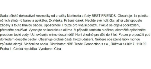 MARTINELIA My best friends Make up sada. Obsahuje: 1x paletka očních stínů - 6 barev a aplikátor, 2x rtěnka.