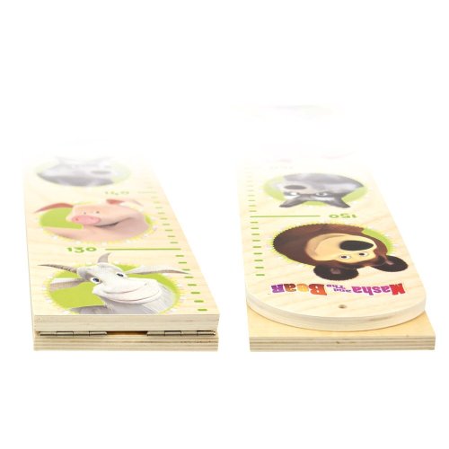 Metr přírodní barvy vyrobený z MDF desky potištěný vtipnými motivy ze známého dětského seriálu „Máša a medvěd" je skvělou dekorací do každého dětského pokoje. Měření výšky těla s roztomilými zvířátky je mnohem zábavnější. Malý otvor v záhlaví umožňuje snadné připevnění na zeď. Tištěná stupnice pro měření je v rozmezí od 80 cm do 160 cm výšky. V kombinaci s dalšími předměty z kolekce "Máša a medvěd" lze dětský pokoj proměnit v nádherný dětský ráj. Metr je přibližně 85,5 cm vysoký, 9,5 cm široký a 1 cm silný. Jedná se o dekorativní předmět, nikoli hračku. Hlavní vlastnosti: K měření dítěte od 80 do 160 cm