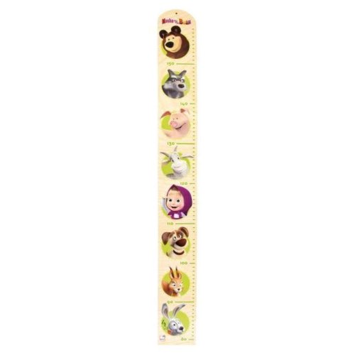 Metr přírodní barvy vyrobený z MDF-desky potištěný vtipnými motivy ze známého dětského seriálu „Máša a medvěd“ je skvělou dekorací do každého dětského pokoje. Měření výšky těla s roztomilými zvířátky je mnohem zábavnější. Malý otvor v záhlaví umožňuje snadné připevnění na zeď. Tištěná stupnice pro měření je v rozmezí od 80 cm do 160 cm výšky. V kombinaci s dalšími předměty z kolekce Máša a medvěd lze dětský pokoj proměnit v nádherný dětský ráj. Metr je přibližně 85,5 cm vysoký, 9,5 cm široký a 1 cm silný. Jedná se o dekorativní předmět, nikoli hračku.