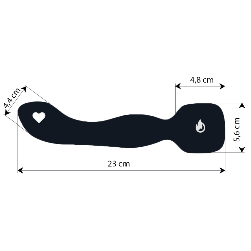 Rozměry: celková délka hlavice: 23 cm délka vibrační hlavy: 4,8 cm. průměr vibrační hlavy: 5,6 cm. maximální průměr vibrátoru: 4,4 cm hmotnost celé pomůcky: 218 g
