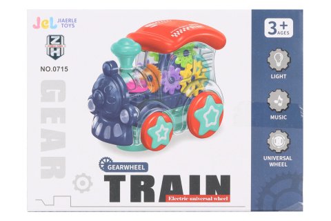 Plastová mašinka na baterie. Průhledná mašinka plná ozubených koleček svítí a vydává zvuky. Napájeni na 3 x AA baterie - nejsou součástí. Rozměr balení cca 17 x 12,5 x 9 cm. Věk 3+