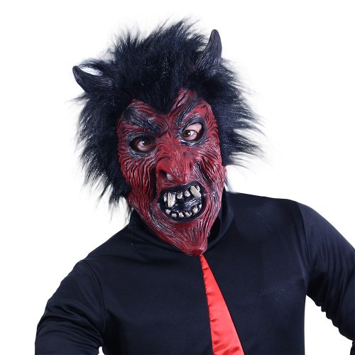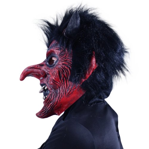 Senzační maska čerta je parádním doplňkem ke kostýmu. Latexová hrozivá maska je v červené barvě s černými vlasy. Vystraš své kamarády touto hrozivou maskou a zažij spoustu legrace.