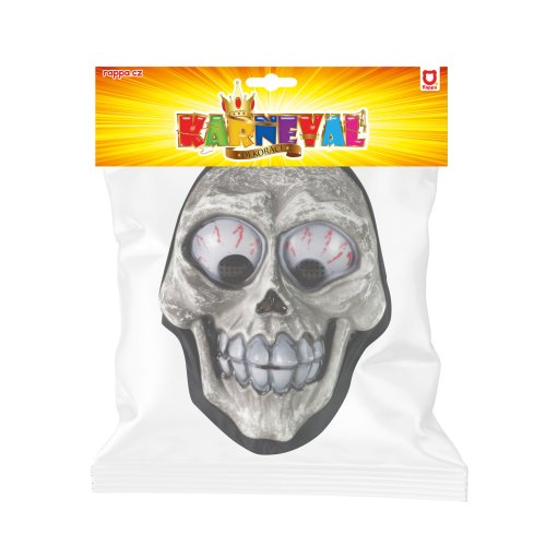 Děsivá maska na obličej s motivem kostlivce je parádním doplňkem na karnevalový večírek čarodějnic nebo Halloween párty. Plastová maska je doplněna textilním šátkem přes hlavu.