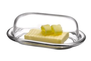 Skleněná máslenka je ideální pomocník při ukládání másla do lednice i jeho servírování při snídani.