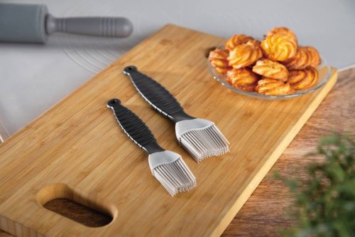 sada dvou mašlovaček se silikonovým štětcem - rozšířená rukojeť pro pohodlný úchop - skvělý pomocník pro nanášení vajec, polev, oleje nebo marinád,.. - díky silikonové hlavici neodpadávají do jídla žádné vlasy ze štětečku - rukojeť je zakončena očkem pro zavěšení - vhodné do myčky nádobí - sada obsahuje 2 různě velké mašlovačky: - menší: