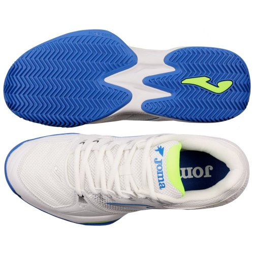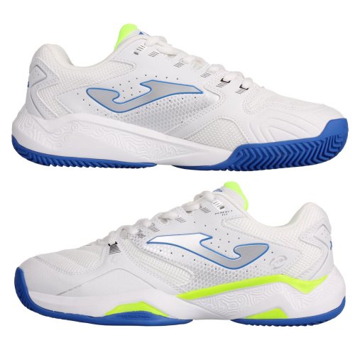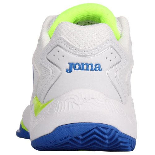 Tenisové boty JOMA Master 1000 Men 2432 jsou určené pro začínající a rekreační hráče, kteří trénují na antukových kurtech. Tato obuv poskytuje výjimečně dobré odpružení, ochranu a pohodlí. Boty jsou vyrobeny převážně z pružného a odolného syntetického materiálu PU s perforací VTS umístěnou na strategických místech tak, aby boty poskytovaly co nejlepší odvětrávání. Část kotníku a jazyka je z polstrovaného nylonu a spolu se šněrováním PERFECT FIT tak boty nabízí co nejlepší přizpůsobení se noze. Mezipodešev je vyrobena z lehkého, pružného phylonu pro tlumení nárazů, se zvýšenou výškou na boční straně pomocí technologie PROTECTION. Podrážka z antukové pryže DURABILITY je určena pro hru na antukových nebo padelových kurtech. Vyznačuje se vynikající trakcí pro co nejrychlejší pohyb během hry.