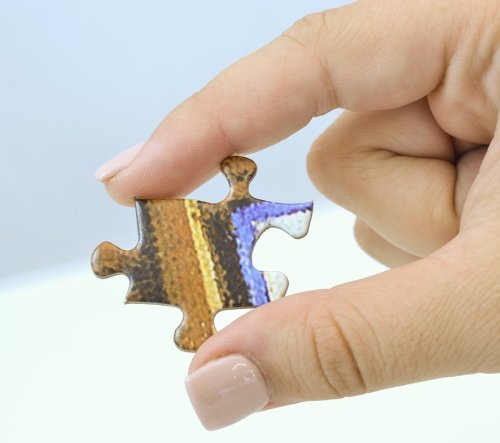Součástí balení je stojánek pro postavení krabičky při skládání puzzle. Vyrobeno z recyklovaného a recyklovatelného materiálu. Kvalitní silné dílky do sebe těsně zapadají a drží.