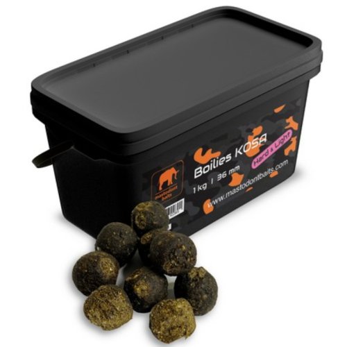 Boilies KOSA je absolutně přírodní masovka, kde je kromě živočišných extraktů a rybích mouček použita směs koření a esenciálních olejů KOPR, ASSA a ČERNÝ PEPŘ. Objemovky je tam tak akorát, aby se kulička udržela pohromadě. Při testování fungovala výborně na všech typech vod a ve všech ročních obdobích. TOP výsledky měla na velkých řekách a větších vodních plochách. Nyní nastal čas, aby jste KOSU prověřili i vy!!!