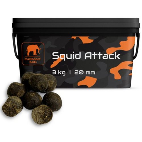 Squid Attack je boilies, které je vhodné především na delší výpravy a do extrémních podmínek, jako jsou velké řeky, vodní plochy, přehrady a vodní nádrže, kde je nutné vyvážet na delší vzdálenosti. Díky své maximální přirozenosti a delší době rozpadu dokáže přelstít nejednoho velikána. Tato nástraha je prostě magnet na velké kapry. Jedno z nejprodávanějších boilies v Česku a na Slovensku.