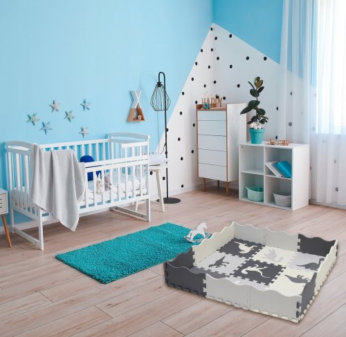 bezpečná a měkká podložka je omyvatelná pěnové puzzle tlumí hluk a izoluje od chladu ideální jako hrací koberec nejen do dětských pokojů puzzle má vroubkovaný povrch tloušťka pěnového puzzle je 0,9 cm balení obsahuje 9 čtvercových dílů, 12 okrajových dílů a 4 rohové díly velikost jednoho dílu je 28 x 28 cm (měřeno od zubu po výřez)