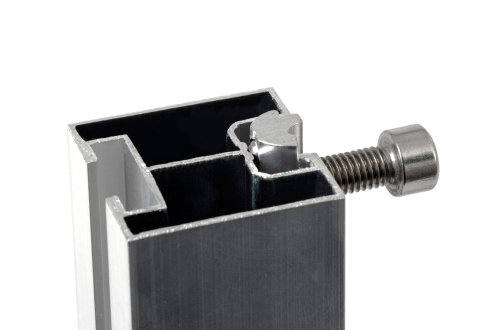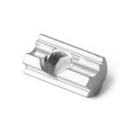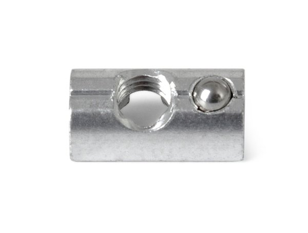 Hliníková matice s nerezovou pružnou kuličkou je určená pro upevnění krajních a středových úchytů do drážky montážního profilu.