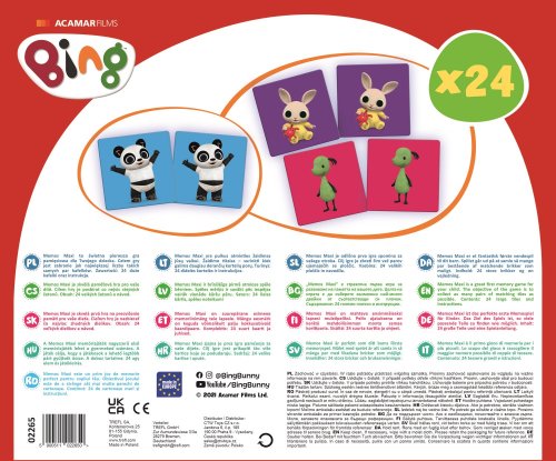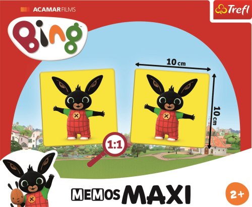 Memos Maxi je skvělá paměťová hra pro všechny děti. Cílem hry je posbírat co nejvíc stejných žetonů - klasické pexeso s velkými dílky (10 x 10 cm). Balení obsahuje 24 ks s motivem ze seriálu Bing Rozměr krabice: 37 x 29 x 6 cm Vhodné pro děti od 2 let