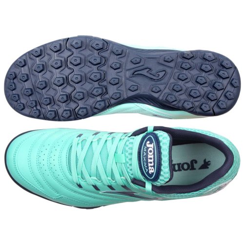Turfy JOMA Maxima 2527 jsou kopačky s výrazným vzorkem na podrážce, která tak lépe přilne k povrchu a pomáhá fotbalistovi udržovat optimální stabilitu. Tento model na umělé povrchy je navržený pro začínající a rekreační hráče. Svršek vyrobený ze syntetického materiálu (Fibertech) je zkombinovaný s prodyšnou textilií s perforací VTS, která umožňuje cirkulaci vzduchu a zajišťuje tak správnou ventilaci. Vyztužení ve špičce Protection absorbuje dopad míče a umožňuje větší přesnost a sílu při střele. Podešev je vyrobená z vysoce kvalitní pryže s vynikající odolností proti oděru. K tomu byl použit systém DURABILITY, který prodlužuje životnost boty.