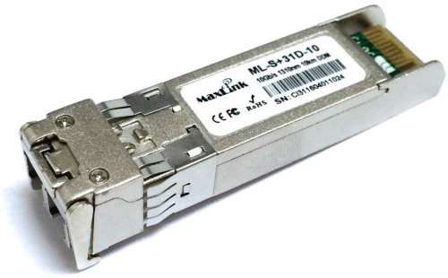 MaxLink 10G SFP+ optický modul, SM, 1310nm, 10km, 2x LC konektor, DDM ML-S+31D-10 je singlemode 10G SFP+ modul s vlnovou délkou 1310nm a dvěma LC konektory pro spojení až na vzdálenost 10km. Modul je "cisco compatibile" a je kompatibilní téměř se všemi aktivními prvky.