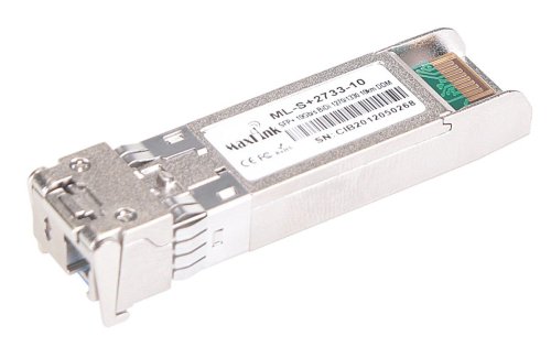 MaxLink 10G SFP+ optický modul, WDM(BiDi), SM, Tx 1270/Rx1330nm, 10km, 1x LC konektor, DDM ML-S+2733-10 je singlemode 10G SFP+ WDM modul pro přenos dat pomocí jednoho vlákna s jedním LC konektorem. Vlnová délka (Tx/Rx) tohoto modulu je 1270/1330nm a je vhodný pro spojení až na vzdálenost 10km. Modul je "cisco compatibile" a je kompatibilní téměř se všemi aktivními prvky. LC konektory v SFP modulu mají broušení typu UPC.