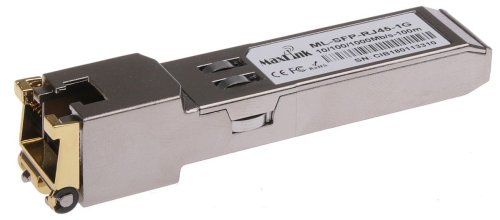 MaxLink SFP 10/100/1000M metalický modul, RJ-45, 100m, 1Gbps ML-SFP-RJ45-1G je Gigabitový SFP metalický modul s konektorem RJ45 pro metalický kabel. Jedná se o cisco kompatiblní modul. Dosah modulu je 100m.