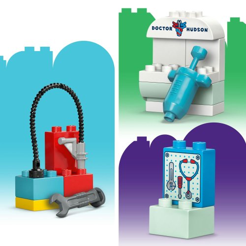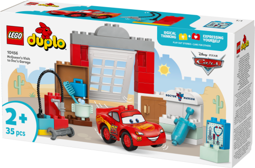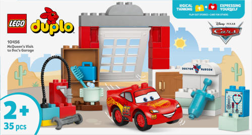 Malí stavitelé se se stavebnicí LEGO® DUPLO® - Disney a Pixar Auta (10456) McQueen a návštěva v garáži doktora Hudsona naučí starat o své oblíbené závodní autíčko. S touto sadou se děti přenesou do světa filmu Auta od studia Disney a Pixar a naučíse o auto pečovat prostřednictvím kreativního hraní. Nápadité hraní začne, jakmile auto Blesk McQueen prosviští garážovými vraty v této stavebnici. Batolata si zamilují ježdění s autem do garáže a ven skrz kývající se dveře. Zdokonalí své jemné motoric ké dovednosti používáním hasáku, otevíráním a zavíráním dveří skříňky a odepínáním hadice sestavitelné automyčky, aby umyly Bleska McQueena po velkém závodě. Fantastické stavebnice LEGO® DUPLO® pomáhají batolatům rozvíjet základní dovednosti. Tatostavebnice rozvíjí i jejich emocionální schopnosti, když si děti hrají na péči o model autíčka, aby zajistily jeho špičkový výkon na závodech. Stavebnice obsahuje 35 dílků.