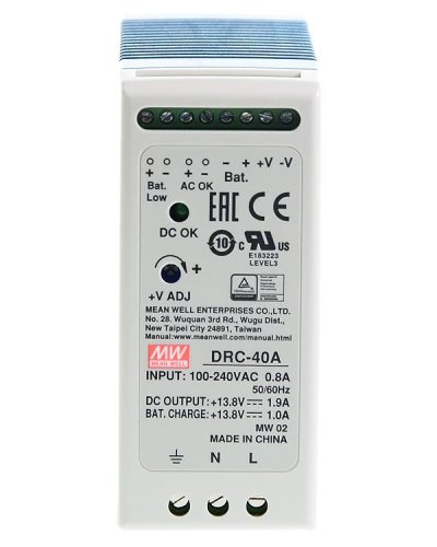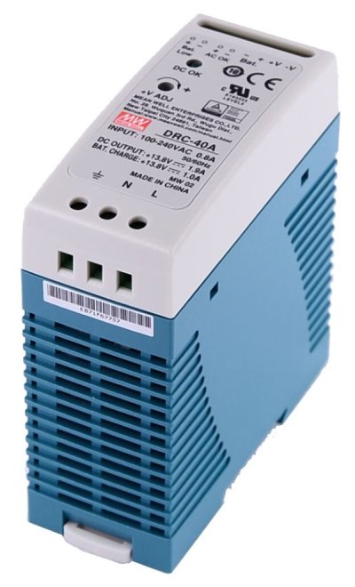 Průmyslový dvoukanálový napájecí zdroj 13,8 V pro instalaci na DIN lištu s rozsahem vstupního napětí 90-264 V (AC) nebo 127-370 V (DC) a výkonem 40 W. Je určený pro aktivní prvky s odpovídajícím napájecím rozsahem. Životnost MTBF (střední doba mezi poruchami) je více než 536 600 hodin, navíc zdroj splňuje vojenský standard MIL-HDBK-217F.