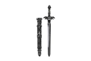 Chce se Vaše dítě stát statečným princem nebo rytířem? Každý takový ale potřebuje svůj meč. S tímto bojovým mečem bude jeho výbava kompletní. Zaručeně s ním vyhraje každou bitvu. Elegantní černý design s pouzdrem vám dodá i šmrnc. Velikost meče: 50 cm Vhodné pro děti od 3 let.