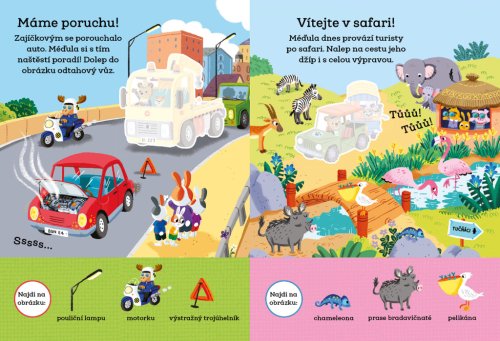 Pojďte objevovat svět společně s Méďulou šikulou! Tahle knížka velkých samolepek pro malé ručičky dětem jednoduše učaruje. Roztomilý méďa je provede světem dopravních prostředků a se spoustou z nich je blíže seznámí… Ať už to má kola, křídla nebo ploutve, jezdí to rychle nebo pomalu, Méďula šikula se ve strojích prostě vyzná! Děti se s ním vydají na báječnou cestu za poznáním a naučí se znát nejrůznější druhy dopravních prostředků.
