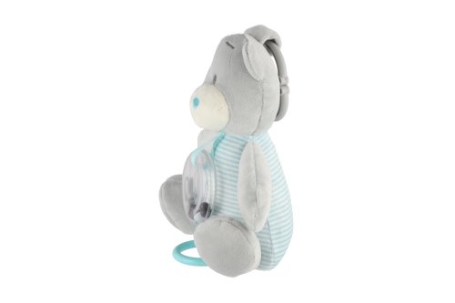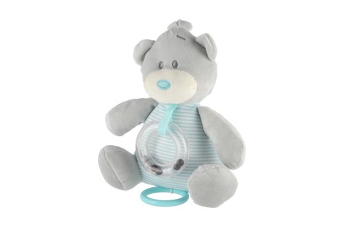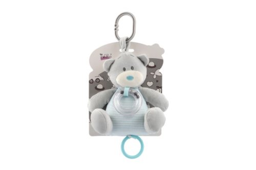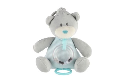 Plyšový medvídek s natahovacím hracím strojkem a chrastítkem přináší kombinaci uklidňující melodie a jemného chrastění. Měkký materiál v modrém provedení je příjemný na dotek, ideální pro miminka. Rozměr: 16,5 x 21,5 cm Vhodné pro děti od narození
