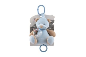 Roztomilý modrý natahovací medvídek hraje příjemnou melodii, která miminko uklidní a pomáhá mu při usínání. Hračku lze zavěsit za pomocí klipu na postýlku nebo kočárek. Hrací strojek je zabudovaný uvnitř medvídka. Rozměr hračky: 18 cm Vhodné pro děti od narození