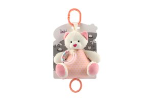 Roztomilý růžový natahovací medvídek hraje příjemnou melodii, která miminko uklidní a pomáhá mu při usínání. Hračku lze zavěsit za pomocí klipu na postýlku nebo kočárek. Hrací strojek je zabudovaný uvnitř medvídka Rozměr hračky: 18 cm Vhodné pro děti od narození