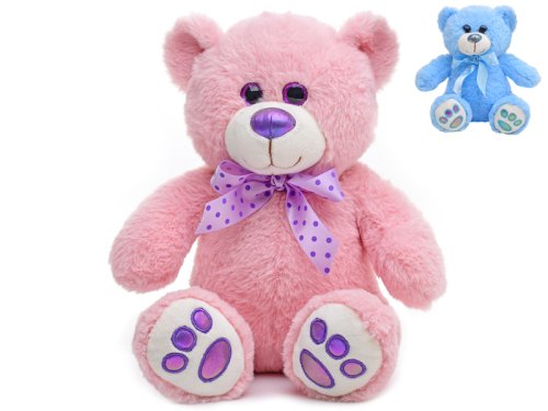 Medvěd plyšový 20 cm sedící s mašlí - mix barev (modrá, růžová)