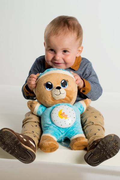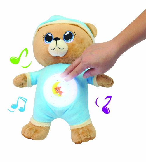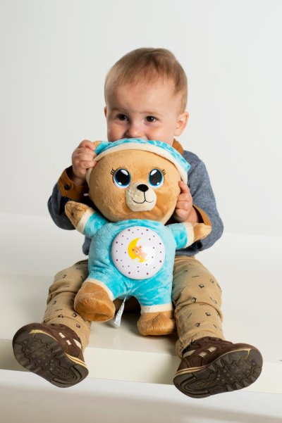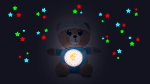 Každé malé dítě má svého mazlíčka na usínání, ke kterému se rádo tulí a cítí pocit bezpečí. Medvídek Usínáček je k tomu jako stvořený. Stačí zmáčknout jeho kouzelné bříško a z pokojíčku je rázem říše snů. Medvídek Usínáček promítá na strop barevnou hvězdnou oblohu a hraje 4 uklidňující ukolébavky. Je heboučký, měkoučký, láká k mazlení. S Usínáčkem děti snadno usínají a mají klidnou celou noc. Velikost medvídka: 32 cm Velikost krabice: 36 x 25,5 x 16 cm Vhodný od 12 měsíců